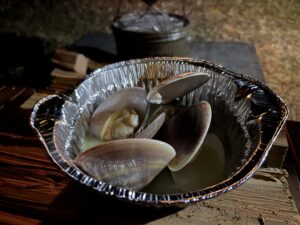 夜も更けてきたので、後はのんびり焚き火を見ながらお酒をいただき、眠くなるのを待ちます。