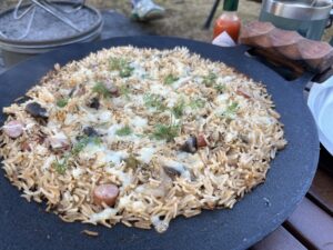 では、昨日の残りの汁と平茸・ウインナーで炊き込みピラフを作ります。