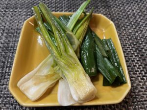 素焼きにしていただくと、葉玉ねぎのとろりとした味わいをシンプルに楽しめます。