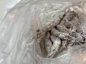 - 背骨 1本・・・耳が付いている側の中央にあります。 足と頭のつなぎ目から触るとわかります。