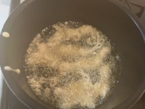 サラダ油を170度ぐらいに熱します。