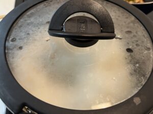 ④パチパチと乾いた音がしてきたら、火を止めて蓋をします。