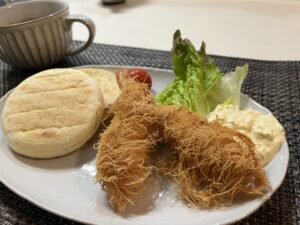 パリッパリの衣と中の海老のジューシーさが最高に美味しいです。