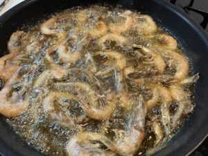 サラダ油に海老の香りが付いてしまいますので、油は2cm程度の少なめな量が良いと思います。