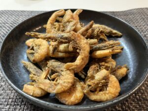 頭から尻尾の先までカリカリと食べられるので、海老の旨みを食べ尽くす系です。