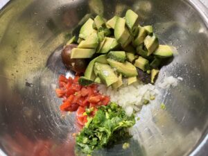 ケソフンディードを焼いている間の時間を使って、シンプルなワカモレを作ります。