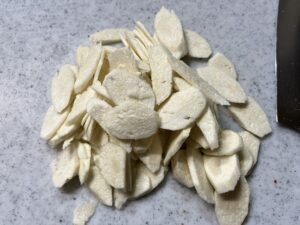 今回のは繊維が少し強かったので、斜めにスライスしました。