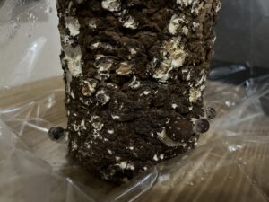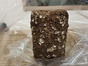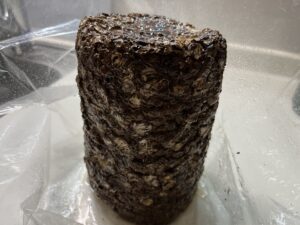 ①栽培ブロックを袋から出す。(なんとなく菌が汚そうに見えますが、たぶん汚い訳ではないので頑張って出しましょう)。