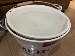 バケツに水を入れて、ブロックを入れます。