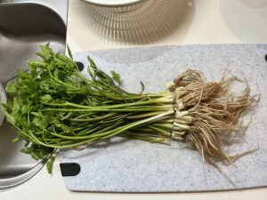 「セリは根っこが美味しい」と聞くので、根っこの天ぷらをしたいと思っています。