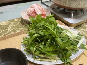 「セリとネギ、豚バラスライスでしゃぶしゃぶ」が一番お勧めとのことだったので早速しゃぶしゃぶにします‼